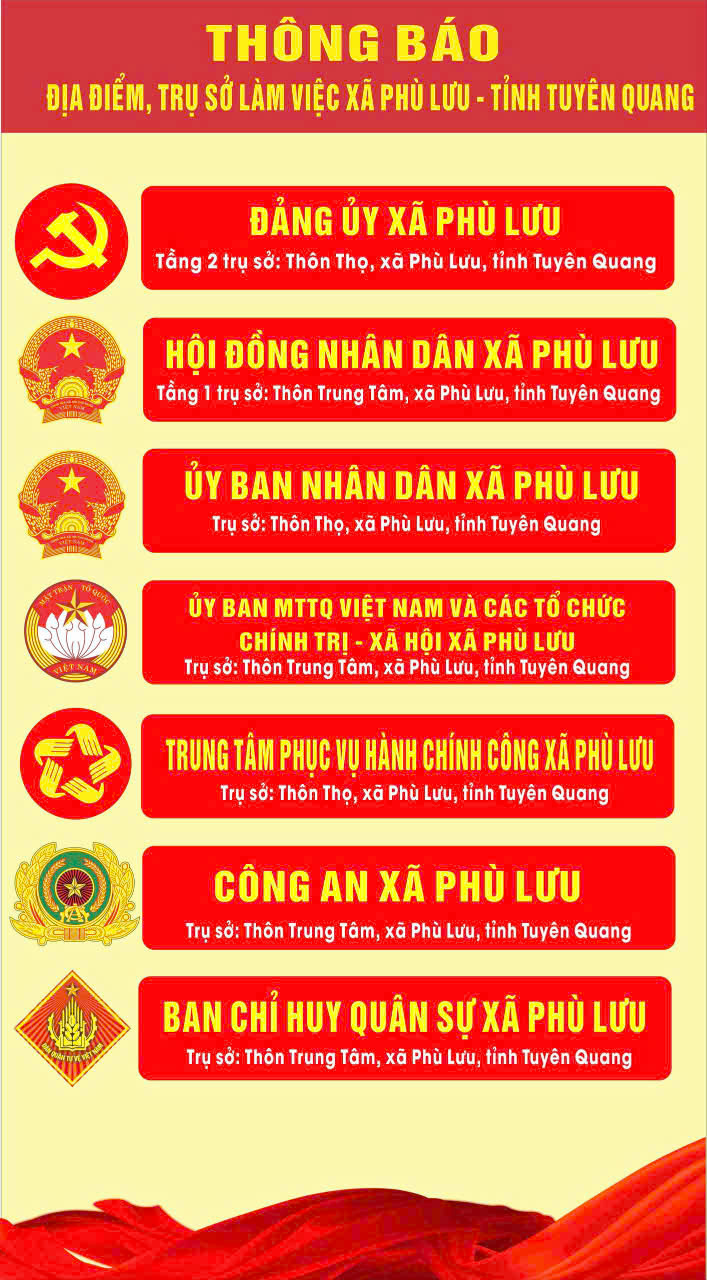 Thông báo địa điểm, trụ sở làm việc của xã Phù Lưu, tỉnh Tuyên Quang